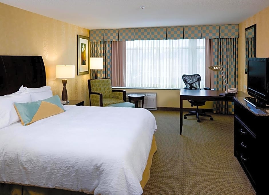 This mobility and hearing accessible standard room features one king-sized bed, and an accessible tub. The room also has a visual alarm, and notification devices for the doorbell or door knock and incoming telephone calls. Grab bar in tub with attached accessible seating, lowered vanity in bathroom, and lowered closet shelf. The ergonomic Mirra chair by Herman Miller is good for your back and better for work. Enjoy your favorite television show on our 36-inch HDTV. There's also a microwave, refrigerator and coffee/tea maker to help you feel at home. And for conducting business, our rooms ensure your productivity thanks to the spacious work desk, two telephones with voicemail. Any corresponding photo may not reflect the specific accessible room type or room feature.
